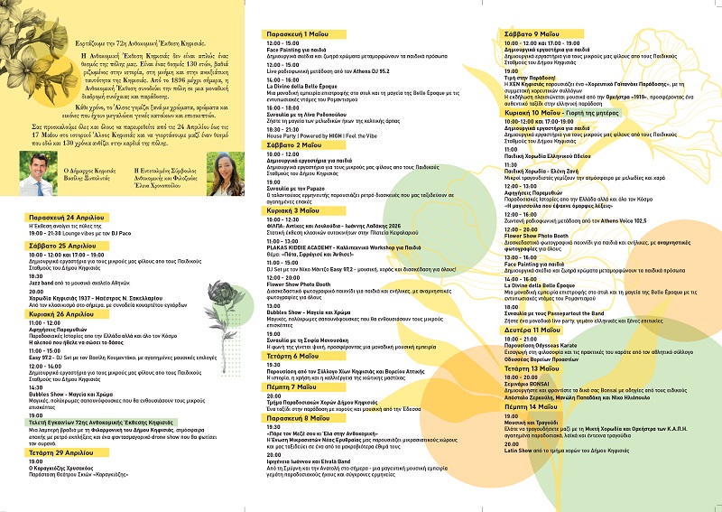 ΠΡΟΓΡΑΜΜΑ ΤΗΣ ΑΝΘΟΚΟΜΙΚΗΣ ΕΚΘΕΣΗΣ ΚΗΦΙΣΙΑΣ 2026